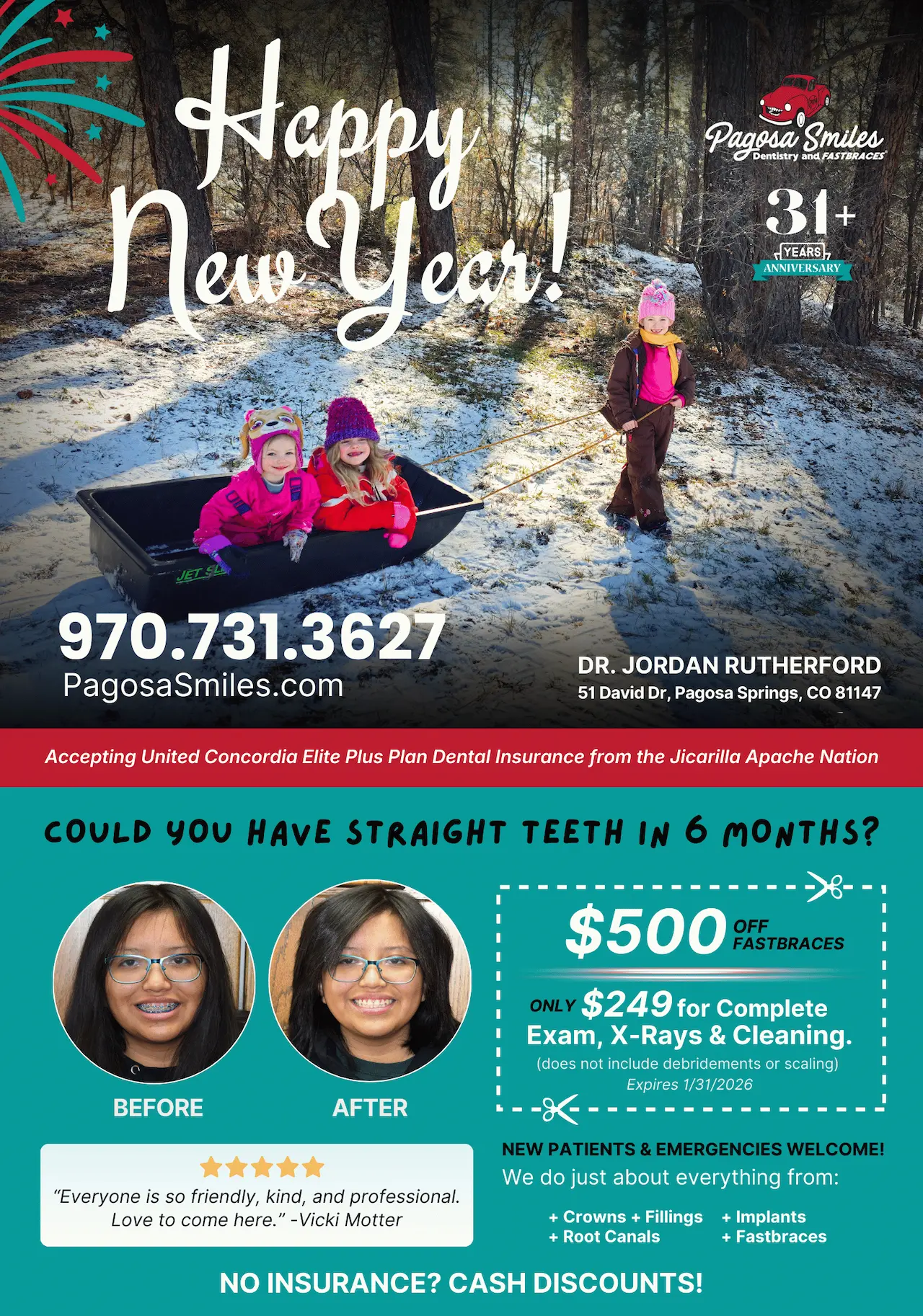 Pagosa Smiles Best Dentist Pagosa Happy New Year - Jan 2026 Specials
